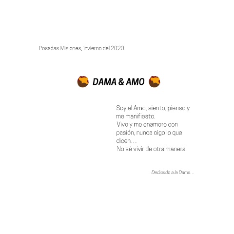 3RVDGDV 0LVLRQHV LQYLHUQR GHO DAMA & AMO Soy el Amo, siento, pienso y PH PDQLǜHVWR 9LYR \ PH HQDPRUR FRQ SDVL³Q QXQFD RLJR OR TXH GLFHQź 1R V© YLYLU GH RWUD PDQHUD Dedicado a la Dama…